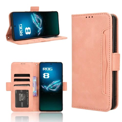 Funda de Cuero para Asus Rog Phone 8 con Textura Becerro y Ranuras para Tarjetas (Rosa)