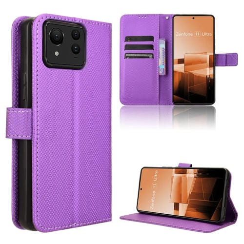 Funda de Cuero para Asus Zenfone 11 Ultra con Textura Diamond (Púrpura)