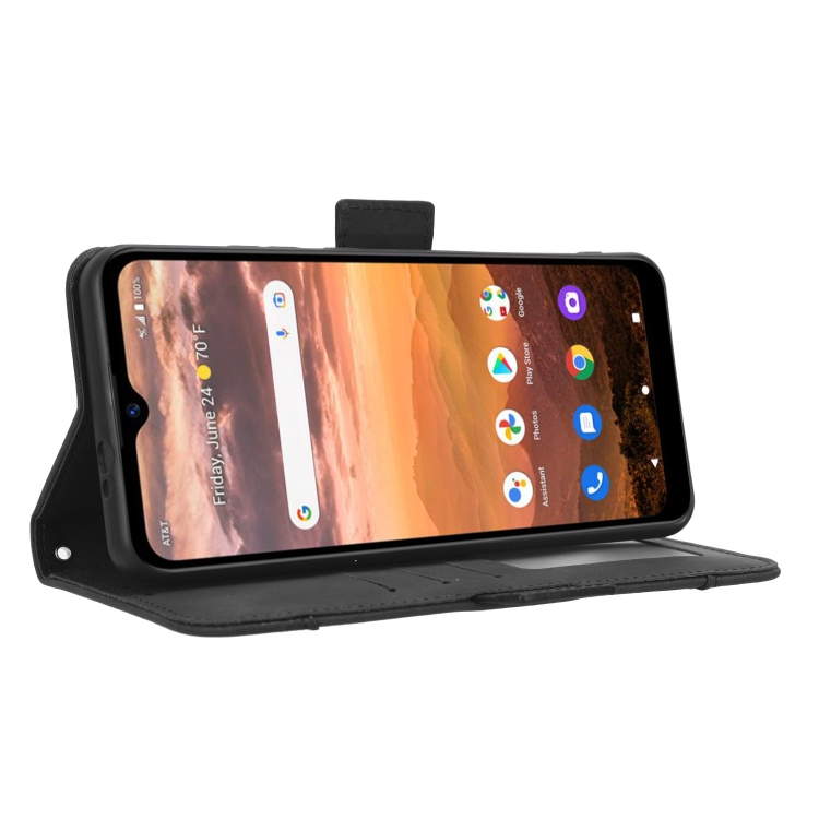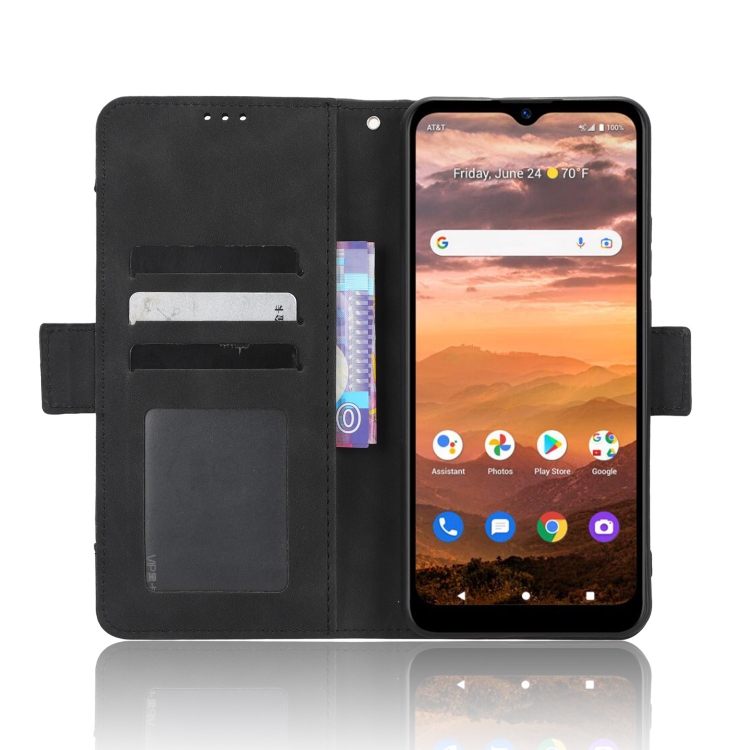 Funda de Cuero para AT&T Motivate Max U668Aa con Textura Becerro y Ranuras para Tarjetas (Negro)