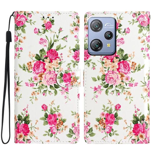 Funda de Cuero para BlackView A53 Pro con Dibujo Coloreado Peonías