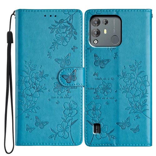 Funda de Cuero en Relieve para BlackView A55 Pro Butterfly Love Flower (Azul)