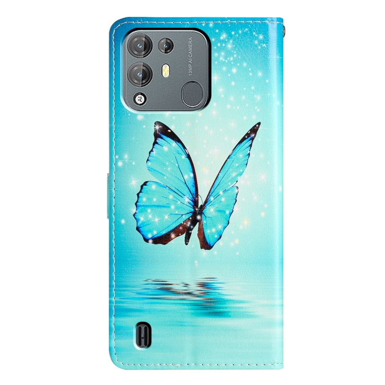 Funda de Cuero para BlackView A55 Pro con Dibujo Coloreado Mariposa Azul