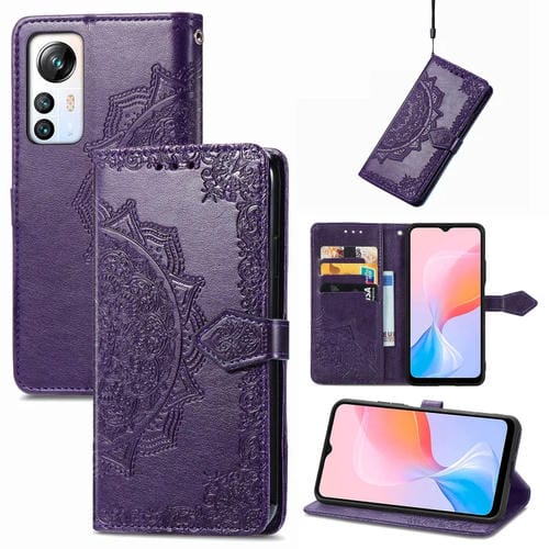 Funda de Cuero en Relieve Mandala Flower para BlackView A85 (Púrpura)