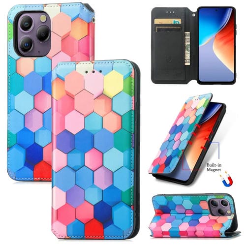 Funda de Cuero Magnética Caseneo para BlackView A96 (Cubo Colorido)