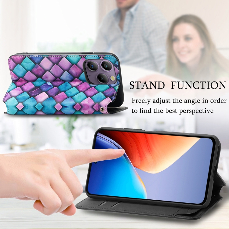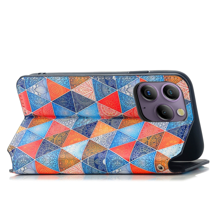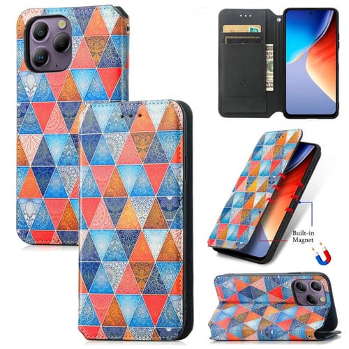 Funda de Cuero Magnética Caseneo para BlackView A96 con Diseño Rhombus Mandala