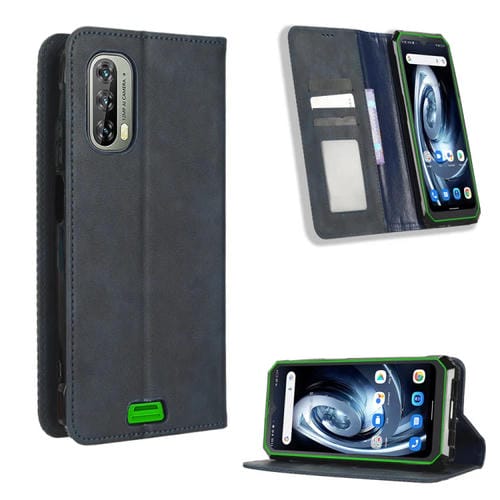 Funda de Cuero para BlackView Bv7100 con Hebilla Magnética y Textura Retro (Azul)