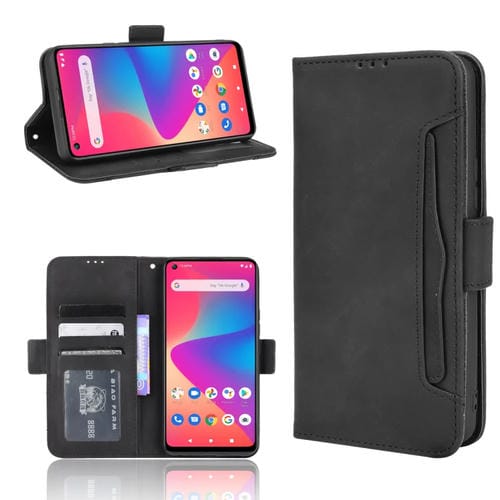 Funda de cuero para Blu G91 con patrón de pantorrilla, soporte, ranuras para tarjetas y marco de fotos (Negro)