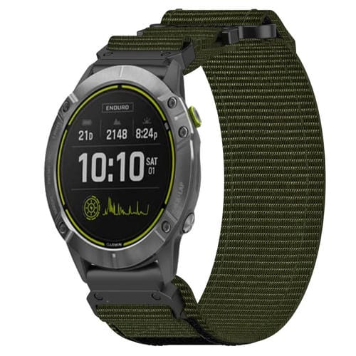 Correa de Reloj con Cierre de Gancho y Bucle de Nailon Garmin Enduro 26mm (Verde Militar)