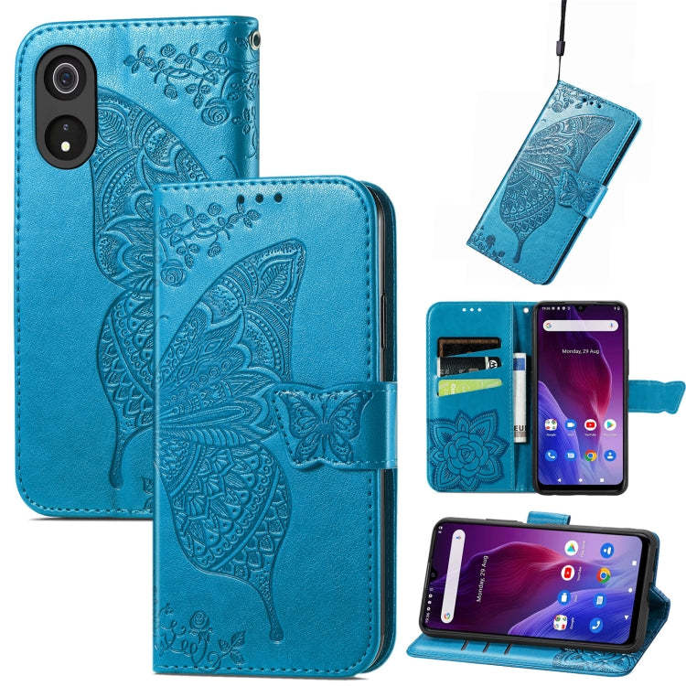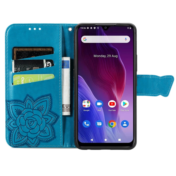 Estuche para Cubot P60 Butterfly Love Flower de Cuero en Relieve (Azul)