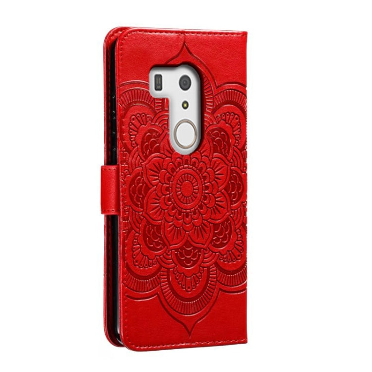 Funda de Cuero para Fujitsu Arrows Be3 F-01L con Patrón En Relieve (Rojo)