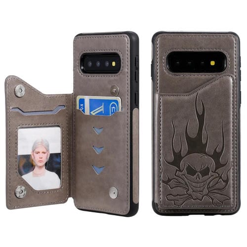 Estuche Protector para Galaxy S10 Skull Head a Prueba de Golpes con Soporte y Ranuras para Tarjetas (Gris)