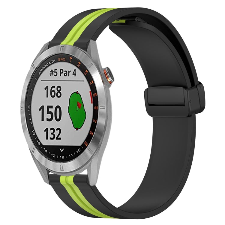 Correa de Reloj de Silicona para Garmin Approach S40 20mm con Cierre Magnético Plegable (Negro + Verde Lima)