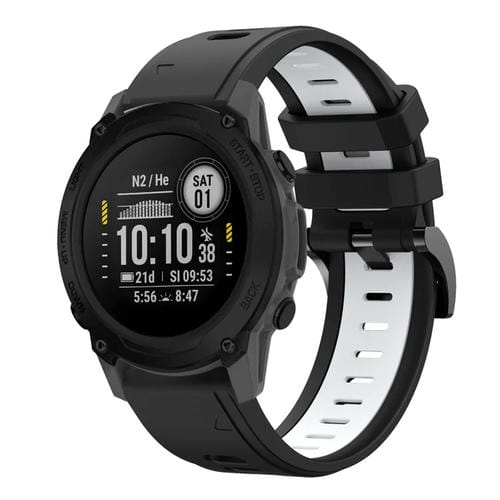 Banda de Reloj de Silicona Deportiva para Garmin Descent G1 22mm (Negro + Blanco)