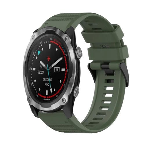 Correa de Reloj para Garmin Descent Mk 2 de Silicona 26mm con Textura Horizontal (Verde Militar)