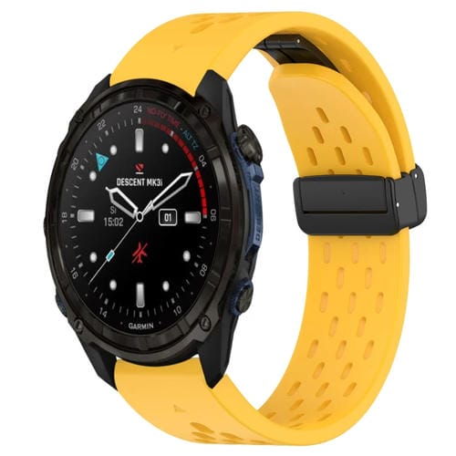 Correa de Silicona para Garmin Descent Mk3I 51mm 26mm con Orificio y Hebilla Plegable (Amarillo)