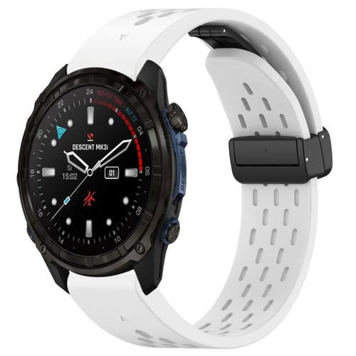 Correa de Reloj Silicona para Garmin Descent Mk3I Mk3 51mm 26mm con Hebilla Plegable Magnética (Blanco)