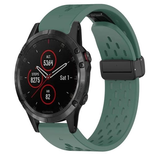 Correa de Reloj silicona para Garmin Fenix 5 Plus con orificio y hebilla plegable 22mm (Verde Oscuro)