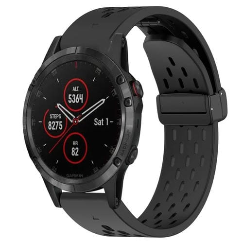 Correa de Silicona para Garmin Fenix 5 Plus con Orificio y Hebilla Plegable 22mm (Negro)
