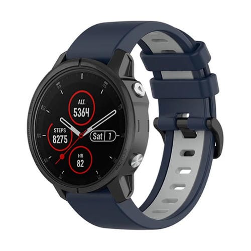 Banda de Silicona Deportiva 22mm para Garmin Fenix 5S Más (Azul Oscuro+Gris)