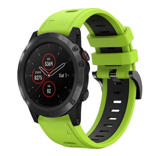 Banda de Reloj Garmin Fenix 5X Sapphire 26mm Silicona Deportiva Dos Colores (Verde Lima + Negro)