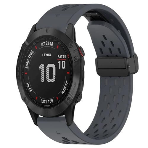 Correa de Silicona para Garmin Fenix 6 Sapphire GPS con Orificio y Hebilla Plegable 22mm (Gris Oscuro)