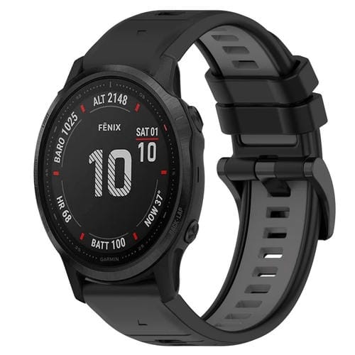 Correa para Garmin Fenix 6S 20mm Silicona Deportiva Dos Colores (Negro + Gris)