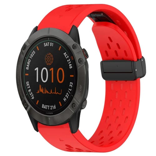 Correa de Silicona para Garmin Fenix 6X 26mm con Orificio y Hebilla Plegable (Rojo)