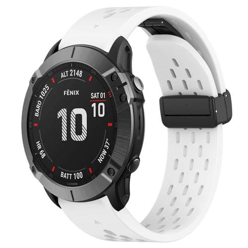 Correa de Silicona para Garmin Fenix 6X Pro con Orificio y Hebilla Plegable 26mm (Blanco)