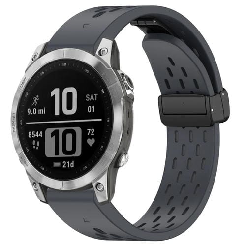 Correa de Silicona para Garmin Fenix 7 y Fenix 7 Pro con Hebilla Plegable Magnética y Orificios de 22mm (Gris Oscuro)