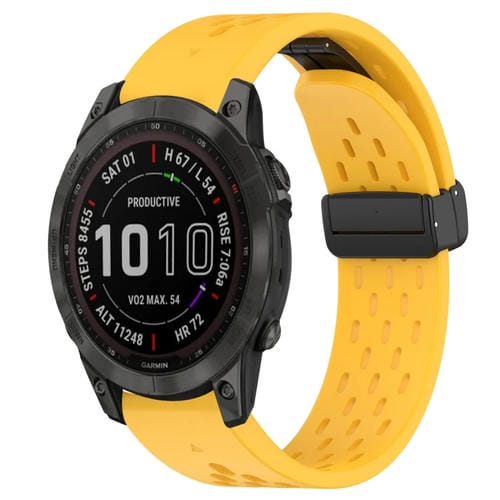 Correa de Silicona para Garmin Fenix 7 Sapphire Solar 22mm con Orificio y Hebilla Plegable (Amarillo)