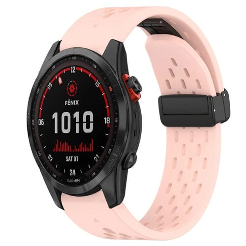 Correa de Reloj para Garmin Fenix 7 Solar 22mm Silicona con Orificio y Hebilla Plegable (Rosa)