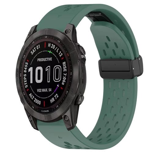 Correa de Silicona para Garmin Fenix 7S Sapphire Solar 20mm con Orificio para Hebilla Plegable (Verde Oscuro)