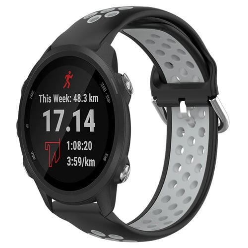 Correa de Reloj Silicona Deportiva para Garmin Forerunner 245 20mm Transpirable Perforada (Negro + Gris)