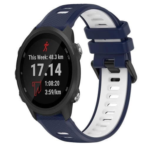 Correa para Garmin Forerunner 245 Music 20mm Silicona Deportiva Bicolor (Azul Medianoche + Blanco)