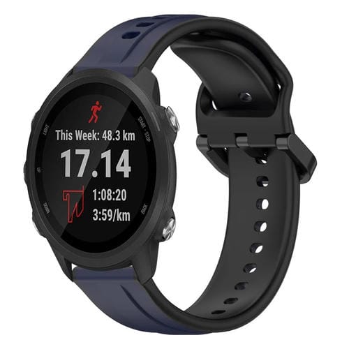 Banda de Reloj para Garmin Forerunner 245 Music de Silicona Dos Colores con Bucle Convexo 20mm (Azul Medianoche + Negro)