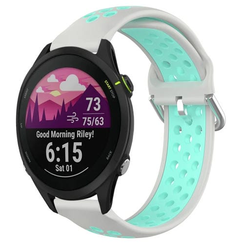 Banda de Reloj Silicona Deportiva para Garmin Forerunner 255 Music 22mm Transpirable Perforada (Gris + Pato de Agua)