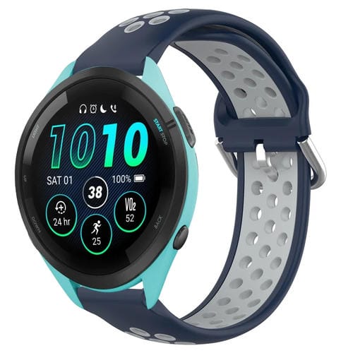 Correa de Reloj para Garmin Forerunner 265 22mm Silicona Deportiva Perforada (Azul Medianoche + Gris)