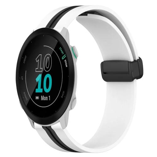Correa para Garmin Forerunner 55 de Silicona con Cierre Magnético Plegable 20mm (Blanco + Negro)