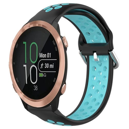 Banda de Reloj Garmin Forerunner 645 Music 20mm silicona deportiva transpirable perforada (Negro + Azul)