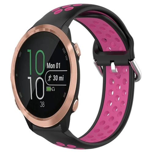 Banda de Reloj para Garmin Forerunner 645 Music 20mm silicona deportiva transpirable perforada (Negro + Rojo Rosa)