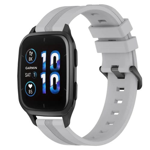 Banda de Reloj de Silicona para Garmin Forerunner Sq2 20mm con Rayas Cóncavas (Gris)