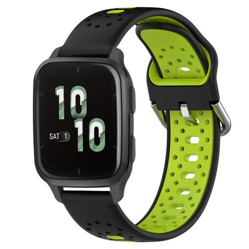 Banda de Reloj de Silicona para Garmin Forerunner Sq2 20mm Transpirable Dos Colores (Negro + Verde Lima)