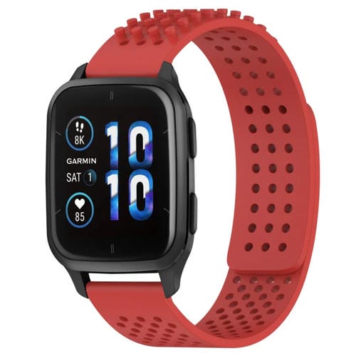 Correa de Silicona para Garmin Forerunner Sq2 con Puntos 3D Transpirables y Orificios 20mm (Rojo)