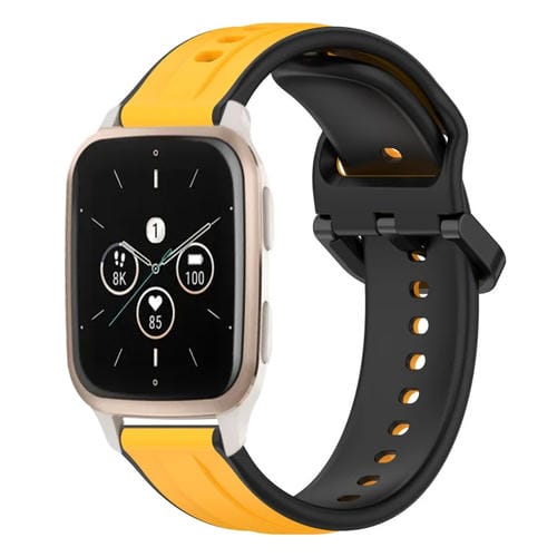 Banda de Reloj de Silicona para Garmin Forerunner Sq2 Music 20mm (Amarillo + Negro)