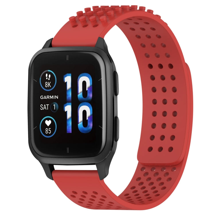 Correa de Reloj de Silicona para Garmin Forerunner Sq2 Music con Puntos 3D Transpirables y Orificios de 20mm (Rojo)