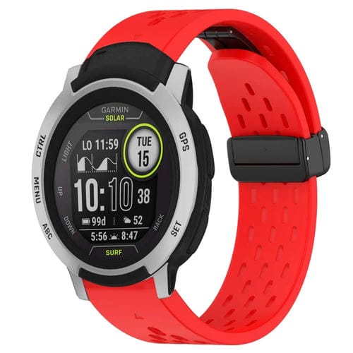 Correa de Silicona para Garmin Instinct con Orificio y Hebilla Plegable 22mm (Rojo)