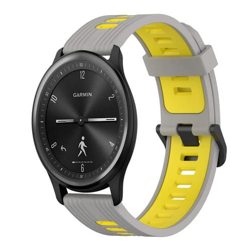 Banda de Reloj silicona para Garmin Move Sport 20mm patrón vertical dos colores (Gris+Amarillo)