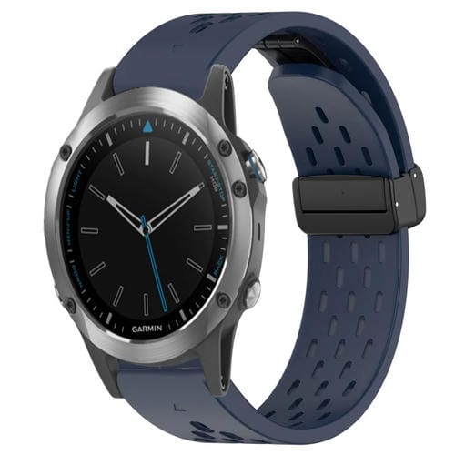 Correa de Silicona para Garmin Quatix 5 con Orificio y Hebilla Plegable 22mm (Azul Medianoche)