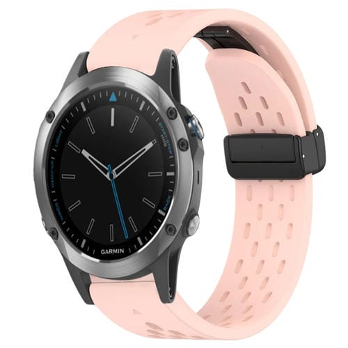 Correa de Silicona para Garmin Quatix 5 Zafiro con Orificio y Hebilla Plegable 22mm (Rosa)