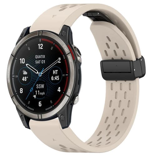 Correa de Silicona para Garmin Quatix 7 Pro con Hebilla Plegable Magnética y Orificios 22mm (Luz de Estrella)